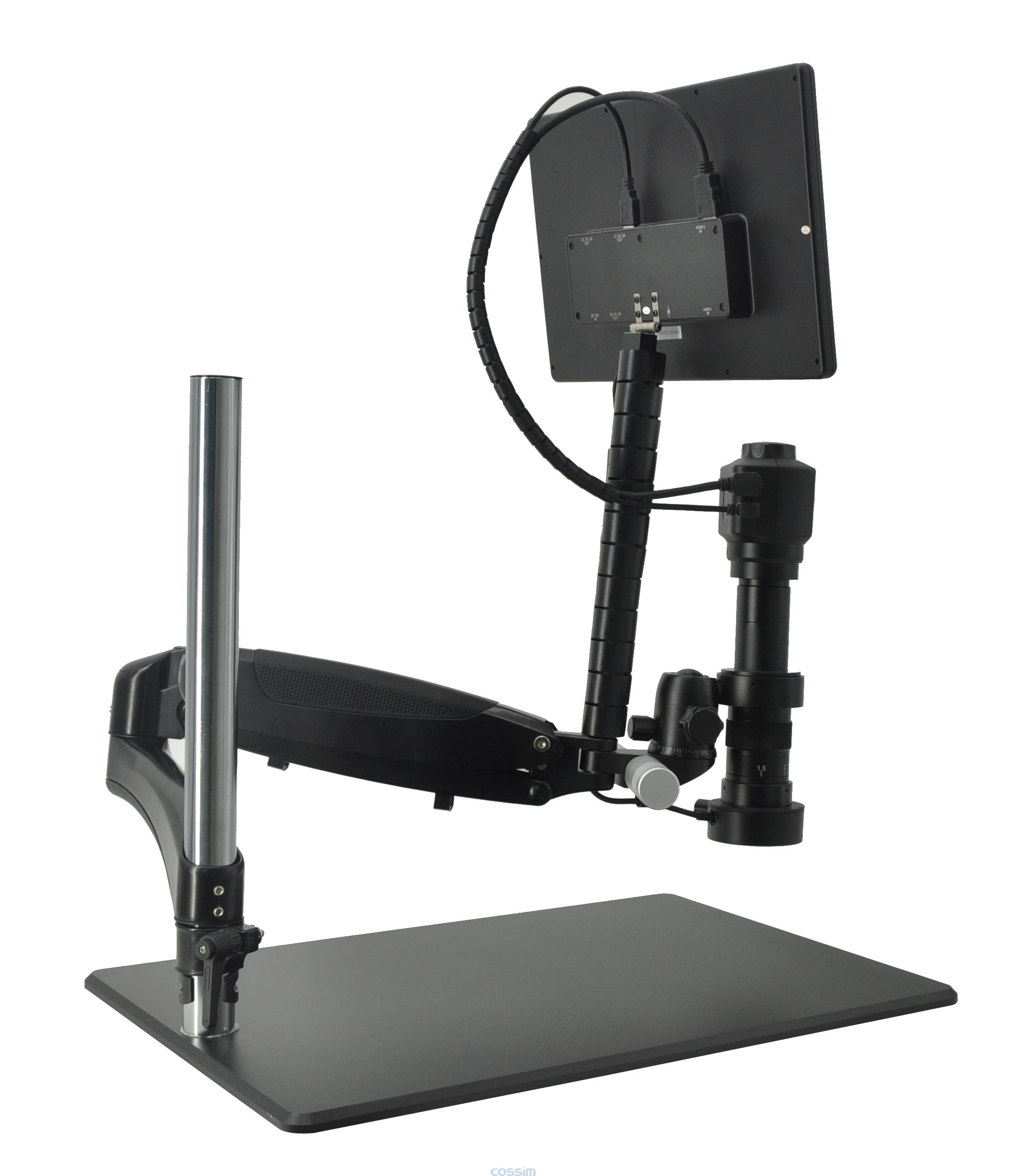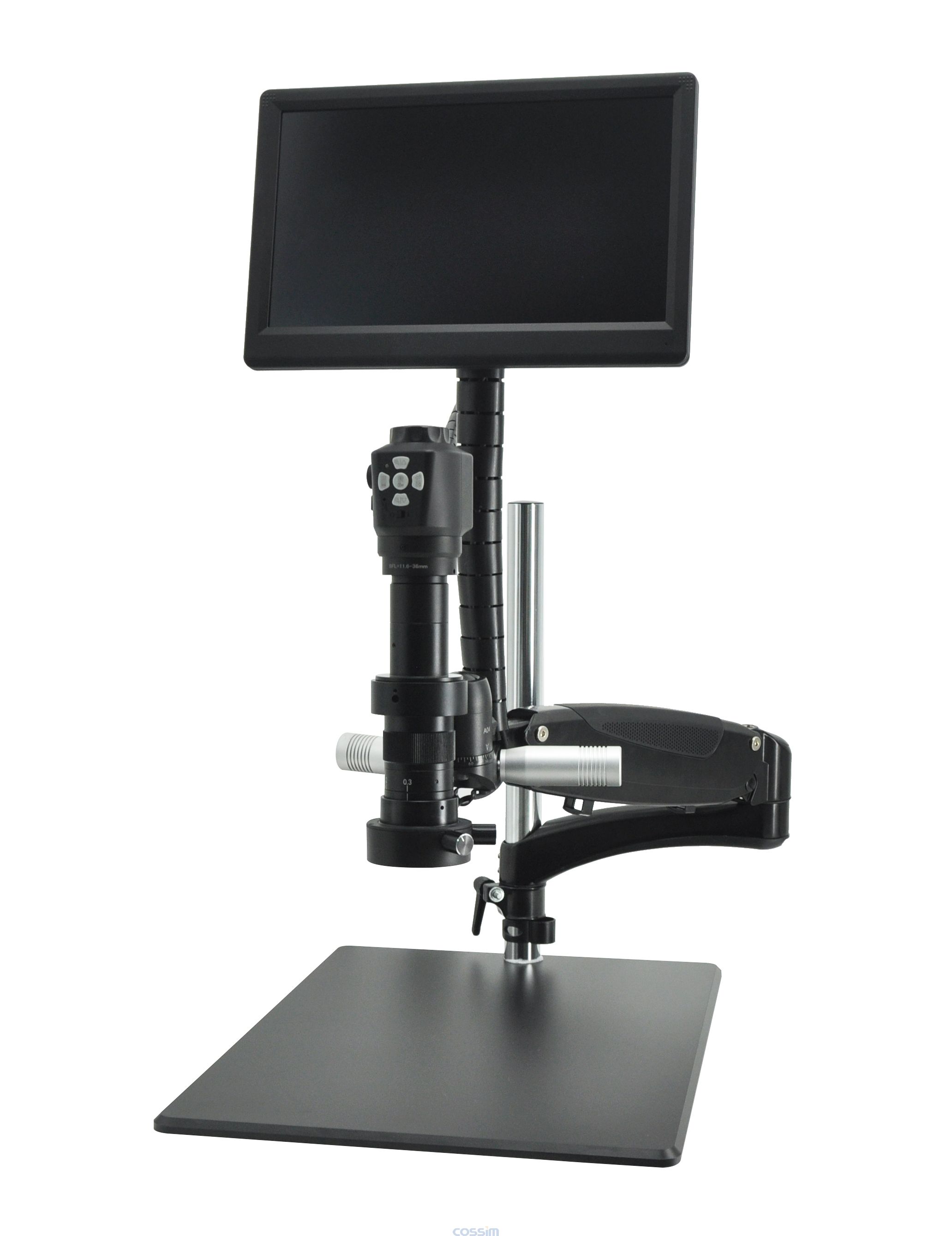 HC62 電子顯微鏡,采用傳統(tǒng)顯微光學(xué)技術(shù)和現(xiàn)代電子視頻技術(shù)相結(jié)合,解決了傳統(tǒng)顯微鏡在長(zhǎng)時(shí)間觀察容易造成人體疲勞的缺 點(diǎn),高性能 CMOS 圖像采集,高分辨率液晶顯示器顯示,真實(shí)還原圖像;改變了顯微鏡單一的二維觀察,提供對(duì)被觀測(cè)物進(jìn)行可旋轉(zhuǎn) 三維觀察,大大提升了顯微鏡的觀測(cè)范圍;整機(jī)集放大成像、顯示、LED 照明于一體,外形設(shè)計(jì)靈巧且使用簡(jiǎn)單。專(zhuān)為滿足快速高效地 檢測(cè)精密細(xì)節(jié)而設(shè)計(jì)。 1. 相機(jī)頂部擁有手動(dòng)對(duì)焦旋鈕,當(dāng)觀察物體從小到大發(fā)生改變的時(shí)候,通過(guò)手動(dòng)對(duì)焦旋鈕調(diào)節(jié)眼高直接拓展 工作距離(工作距離支持 0mm~200mm),避免繁瑣的鏡頭調(diào)焦工作,幫助您獲取圖像效果。 2. 內(nèi)置 350 萬(wàn)像素 1080i 60fps 相機(jī),采用高清變倍鏡頭。 3. 輕松實(shí)現(xiàn)連續(xù)變倍放大,綜合放大 10X~117X(基于 12.5 英寸顯示屏)。 4. 此款電子顯微鏡將傳統(tǒng)內(nèi)同軸光燈外置化,能均勻照亮平面、有光澤的表面,加強(qiáng)劃刻,凹陷或壓印特征。能夠凸顯物體表 面不平整,克服表面反光造成的干擾,提高了顯微鏡的重現(xiàn)性,凸顯更多傳統(tǒng)顯微鏡無(wú)法顯示的細(xì)節(jié)。 ■ 漫發(fā)射 LED 環(huán)形燈,減少眩光。 ■ 外同軸 LED 環(huán)形燈,更利于光面,高反射面和難以觸及的區(qū)域的觀察。 ■ 兩種環(huán)形燈獨(dú)立控制,亮度可根據(jù)實(shí)際觀察情況自由組合調(diào)節(jié),由顯示 屏集中供電,安全可靠,減少落地線,使辦公桌面更簡(jiǎn)潔 5. 可在垂直觀察與 360 度旋轉(zhuǎn)觀察之間任意切換 , 任意懸停,靈活易用,方便用戶從不同視角觀察 物體,幫助用戶手眼協(xié)調(diào)、自由操作,適合檢測(cè) PCB 和托盤(pán)狀元器件等大面積對(duì)象。由于增大了操作員頭部和身體的自由 度,從而提高工作效率,有效減輕疲勞。 6. 全套集成的解決方案 - 一臺(tái)設(shè)備可實(shí)現(xiàn)多項(xiàng)功能連續(xù)變倍放大任務(wù) ; 配備多合一 12.5 英寸全高清顯示屏,需要時(shí)可以微 調(diào)顯示屏角度以便仰視(調(diào)節(jié) 90°)或俯視(調(diào)節(jié) 24°)。 7. 作為標(biāo)準(zhǔn)配置提供內(nèi)置高效的圖像捕捉視頻捕捉軟件,方便您快速上手使用。 ■ 相機(jī)功能按鍵可優(yōu)化相機(jī)設(shè)置,包括白平衡、曝光、銳度、對(duì)比、凍結(jié)、十字標(biāo)線等。 ■ 軟件菜單支持英文、中文(簡(jiǎn)體 / 繁體)、日文、俄語(yǔ)、法語(yǔ)、德語(yǔ)、意大利語(yǔ)、西班牙 9 種語(yǔ)言。 ■ 捕捉到的圖像支持 jpg 格式。 ■ 錄制視頻支持 MOV, 非常適合培訓(xùn)。 ■ 配備 TF 卡槽,支持Zui大 64G TF 卡用于圖像與錄像保存(TF 卡自備)。