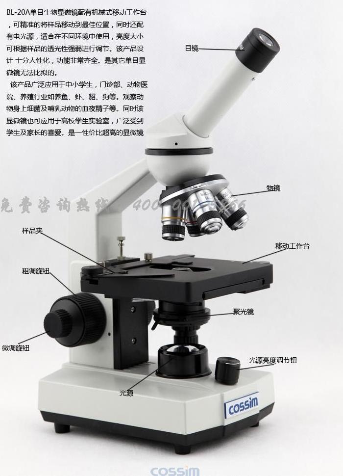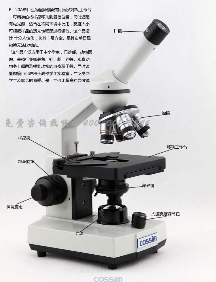 產(chǎn)品介紹BL-20A單目生物顯微鏡在一般農(nóng)業(yè)研究及中小學教學用以觀察各項生物標本片,如各種孢子、根莖橫斷面,花粉,昆蟲的頭部翼,腳,卵,和腳印等。在醫(yī)學臨床工作人體三大常規(guī)化驗等。配電子目鏡事攝像頭可可電腦或電視機用途相當廣,學校教學、醫(yī)院教學、家庭教育養(yǎng)殖行業(yè)等。儀器體積小、重量輕、易操作。 特點: