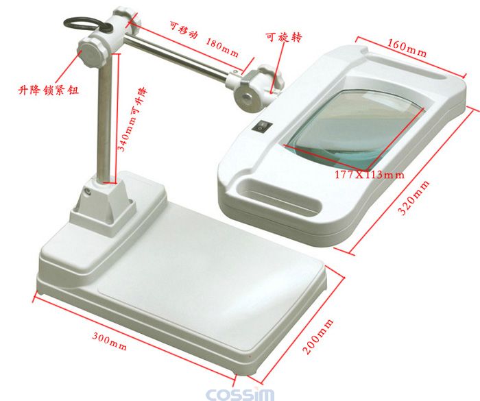 臺(tái)式升降放大鏡,高度可調(diào)節(jié)并且可多方位旋轉(zhuǎn)。