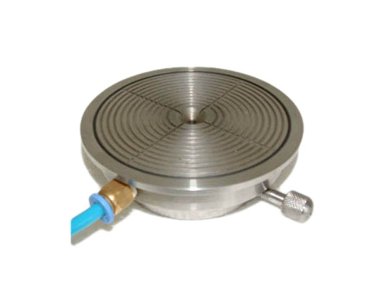 產(chǎn)品介紹真空吸盤是我司自主設(shè)計研發(fā)的一款用于固定薄片狀樣件的精密真空用設(shè)備,吸盤上有一定的孔洞,即通過氣動管路或一定的抽真空裝置,通過吸盤上的孔洞抽走或稀薄密閉空間里的空氣,使內(nèi)外產(chǎn)生壓力差,將樣件和真空吸盤牢牢地擠壓在一起,從而將薄片狀樣件吸附固定住。真空吸盤主要適合不適用于用粘結(jié)方法固定的,且能承受一定的吸力的樣品。真空吸盤可與我司制造的SYJ-400劃片切割機配套使用,用于切割或?qū)Ρ∑瑺顦悠穭澆蹠r吸附固定樣品使用;可與真空旋轉(zhuǎn)涂膜機配套使用,用于吸附固定將要進行涂膜的薄片狀樣品用。 |